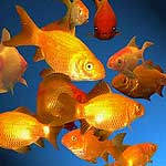 damm. På botten är vattnet som varmast och guldfiskarna samlas där. Åtminstone